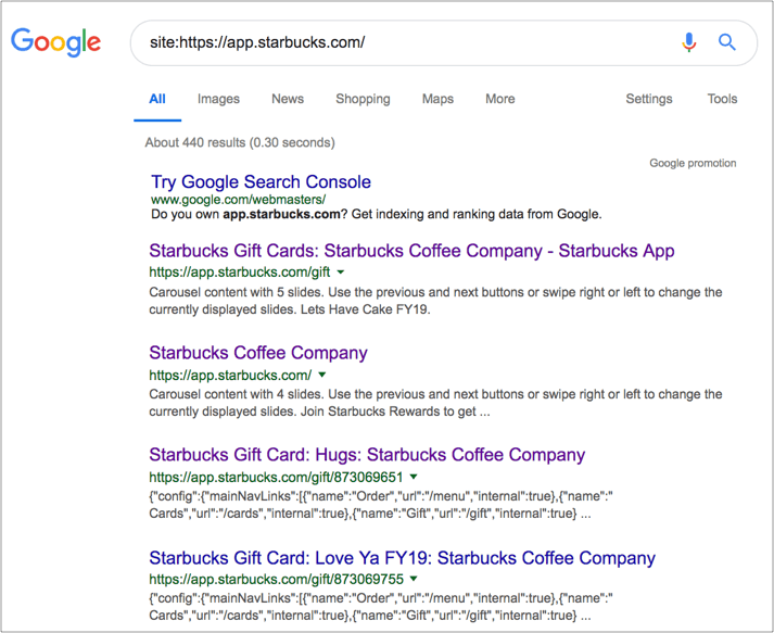 For example, the Starbucks PWA uses client side rendering, with the content and links of its home page only available through the DOM but not in the raw HTML: