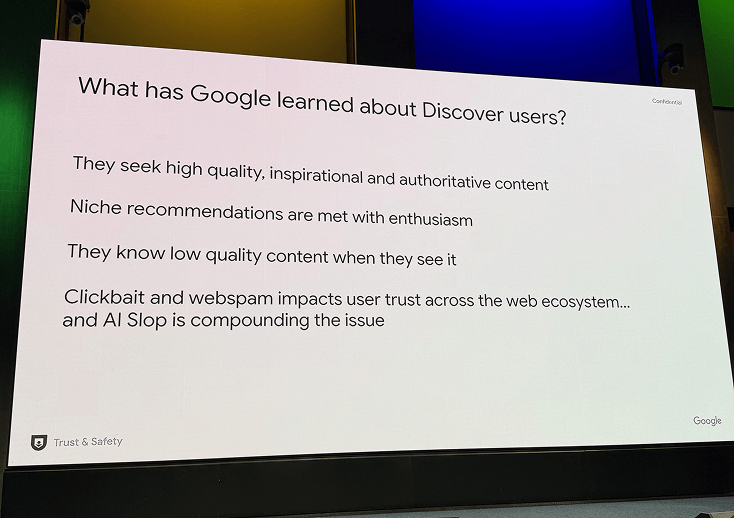 - Clickbait and webspam impact user trust across the web ecosystem and AI slop compounds the issue